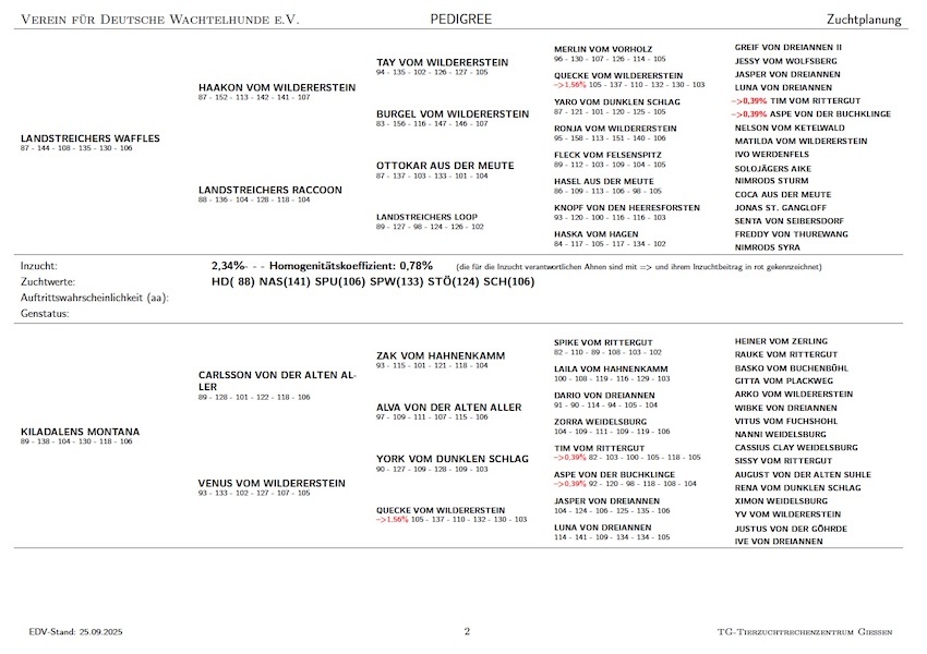 Kiladalens Montana är parad med Landstreichers Waffles.